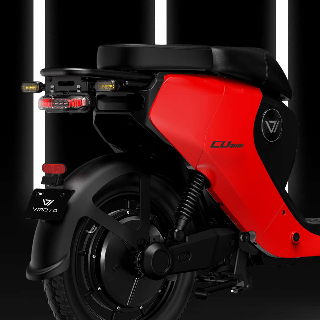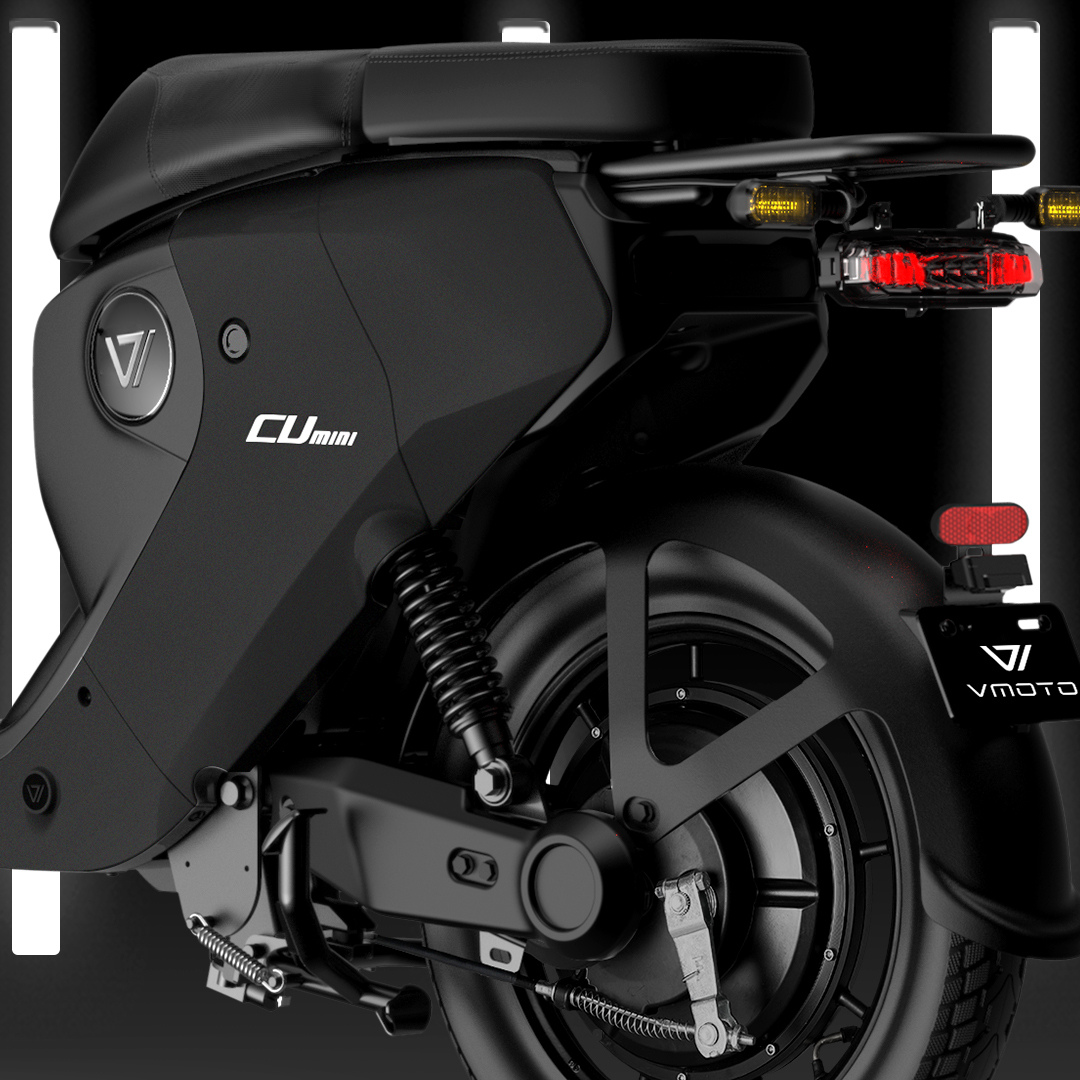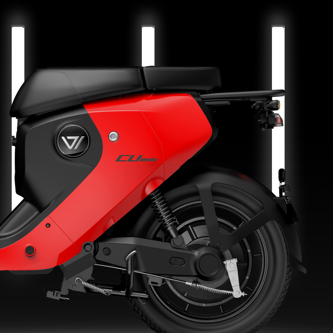 The CUmini is equipped with a rear-wheel hub motor delivering a nominal power of 0.6 kW and a peak power of 1.0 kW. Designed for urban mobility, it reaches a top speed of 35 km/h (with 48V/20Ah battery) and 40 Km/h (with 60V/24Ah battery), ensuring agility and responsiveness in all riding conditions.