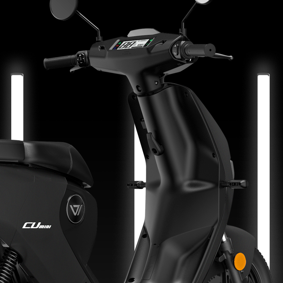 The CUmini features a removable 48V/20Ah battery or 60V/24Ah battery that can be easily recharged using a standard household outlet. With a charging time of 6.5 hours, it offers a range of up to 45 km on a single charge, tested under the WMTC Stage 3. An efficient and convenient solution for everyday commuting.